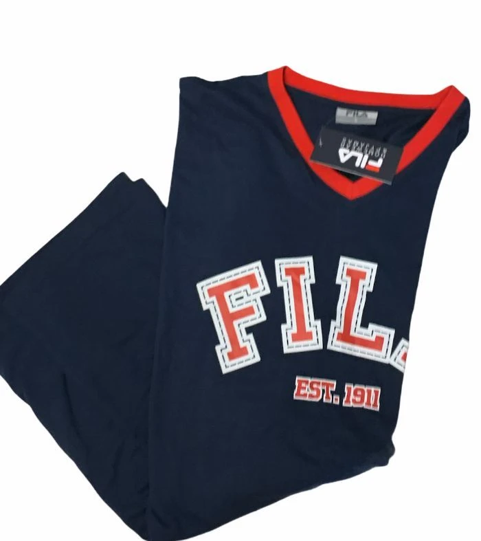 Offerta outlet campionario Abito casa camicia da notte Fila 4074 in cotone caldo pesante invernale morbido naturale ed anallergico con scollo a V e scritta sul davanti.