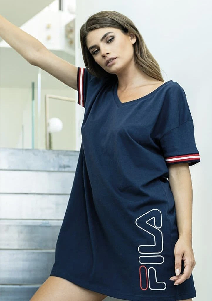 Abito Casa maximaglia Fila 4047 Outlet in 100% cotone comodo e leggero maxi maglia mezza manica con scollo a V e stampa avanti.
