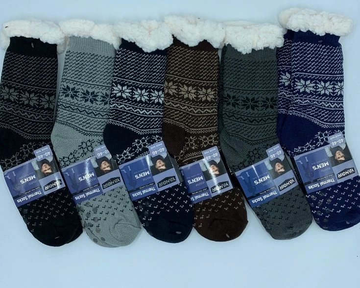 Calza Uomo termica antiscivolo Thermal Socks 8122 A con morbida pelliccia all’interno e fantasia alci all’esterno super calda