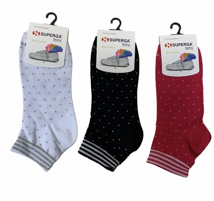 Calzino Donna corto Bio Cotton Superga 1003 cotone leggero estivo fantasia pois con bordo rigato sportivo