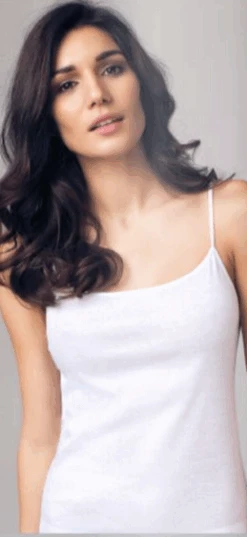 Bellissima canottiera 100% cotone leggero morbido e annallergico spalla stetta completamente liscia con bordi in raso elegante . Aderisce perfettamente al corpo ottima vestibilita’ e massimo confort.