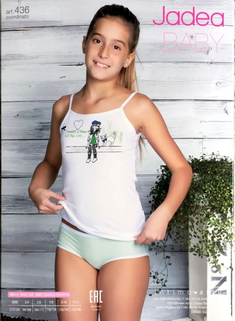 Completo Bimba Jadea canottiera spalla stretta top con stampa sul davanti slip alto tinta unita con bordini piatti tutto in cotone modal elasticizzato ottima vestbilita’ e confort