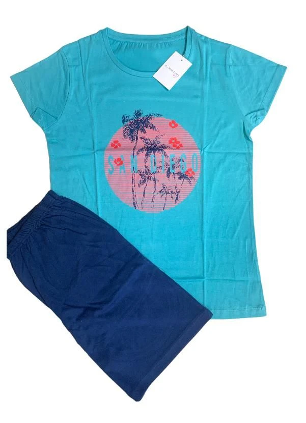 Completo Donna corto 100% cotone IL GRANCHIO lady 5050 Outlet con maglia girocollo mezza manica con stampa e pantalone corto con tasche sul davanti in morbido e fresco 100% cotone jersey
