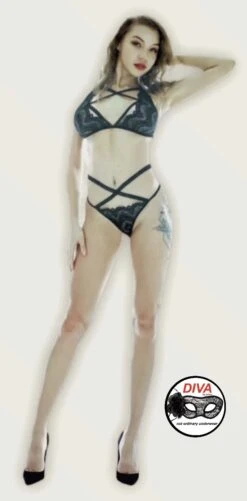 Completo Donna SEXY perizoma Diva by Prive’ 1114 in pizzo elasticizzato reggiseno e perizoma con strisce sexy ad incrocio ideale per sexy moment