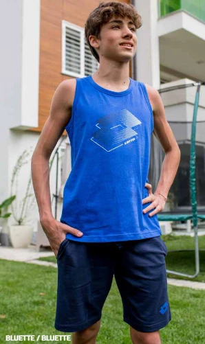Completo Ragazzo canottiera corto Lotto sport 4131 Outlet completo junior in 100% cotone leggero jersey canottiera spalla larga con stampa sul davanti e pantalone corto con laccio in vita e tasche
