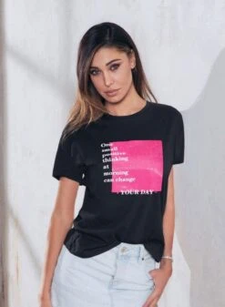 Maglia Donna T-shirt Giriocollo mezza manica in jersey 100%cotone Jadea 4226 con stampa sul davanti