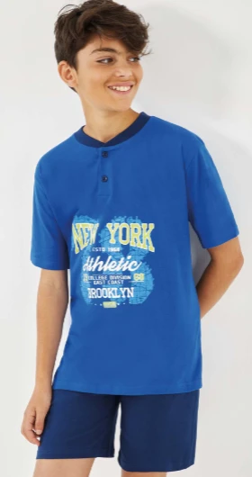 Pigiama Ragazzo corto Il GRANCHIETTO 4082 con maglia aperta a serafino co e pantalone corto tutto in puro cotone 100% jersey leggero e antiallergico