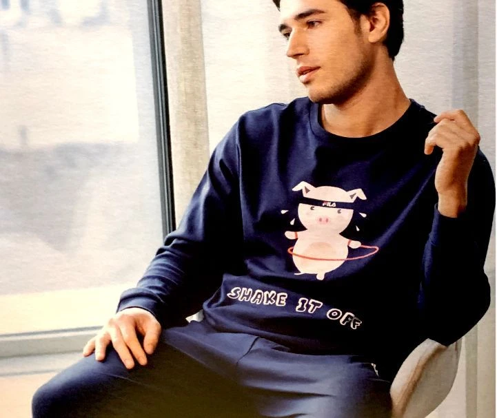 Offerta campionario Outlet Pigiama Uomo Fila 1083 100% cotone caldo interlock invernale morbido naturale ed anallergico .Tuta uomo casa Fila Homewear Maglia girocollo tinta unita con stampa e logo sul davanti, bordo in vita e sui polsi, pantalone tinta unita con bordi alle caviglie.Ottima vestibilita’ e massimo confort