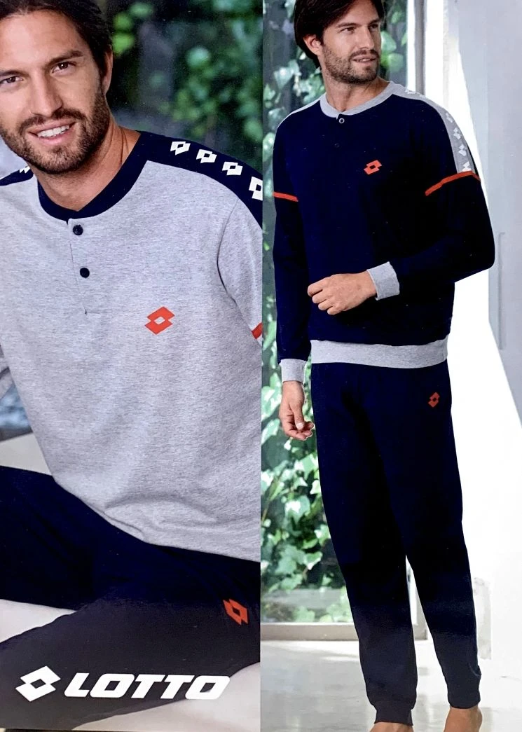 Pigiama Uomo Lungo 100% Cotone Jersey Lotto 4058 Prezzo Promozionale