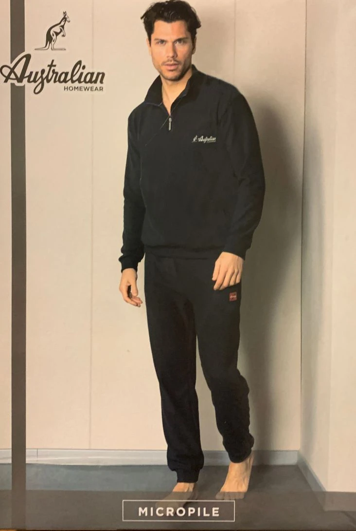 Offerta speciale Tuta Uomo Australian AP77 in micropile caldo morbido. Giacca aperta con zip a meta bordo ai polsi, pantalone con bordi alle cavigliee tasche sul davanti.