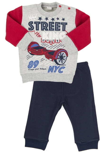 Bellissimo pigiama neonato cotone felpato invernale con maglia girocollo stampata con bottoni laterali a pressione bordato ai polsi ed in vita e pantalone tinta unita con bordo alle caviglie. Massimo confort