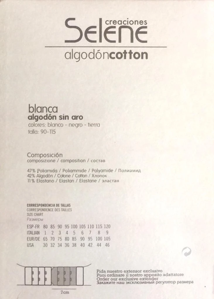 Reggiseno senza ferretto in cotone coppa D Selene art.Blanca SENZA FERRETTO IN CONTONE CON DOPPIA COPPA PREFORMATA. SERIE NATURCOTTON.